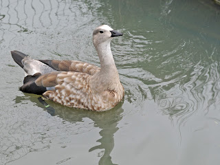 De couleur grise, le bec et les pattes sont noirs, et sous ses ailes, ses atouts: un plumage bleu intense, qui lui a donné son nom. Elle est réputée très douce et sociable. L'Ouette à ailes bleues a bien failli disparaître, l'espèce survit grâce aux élevages:
